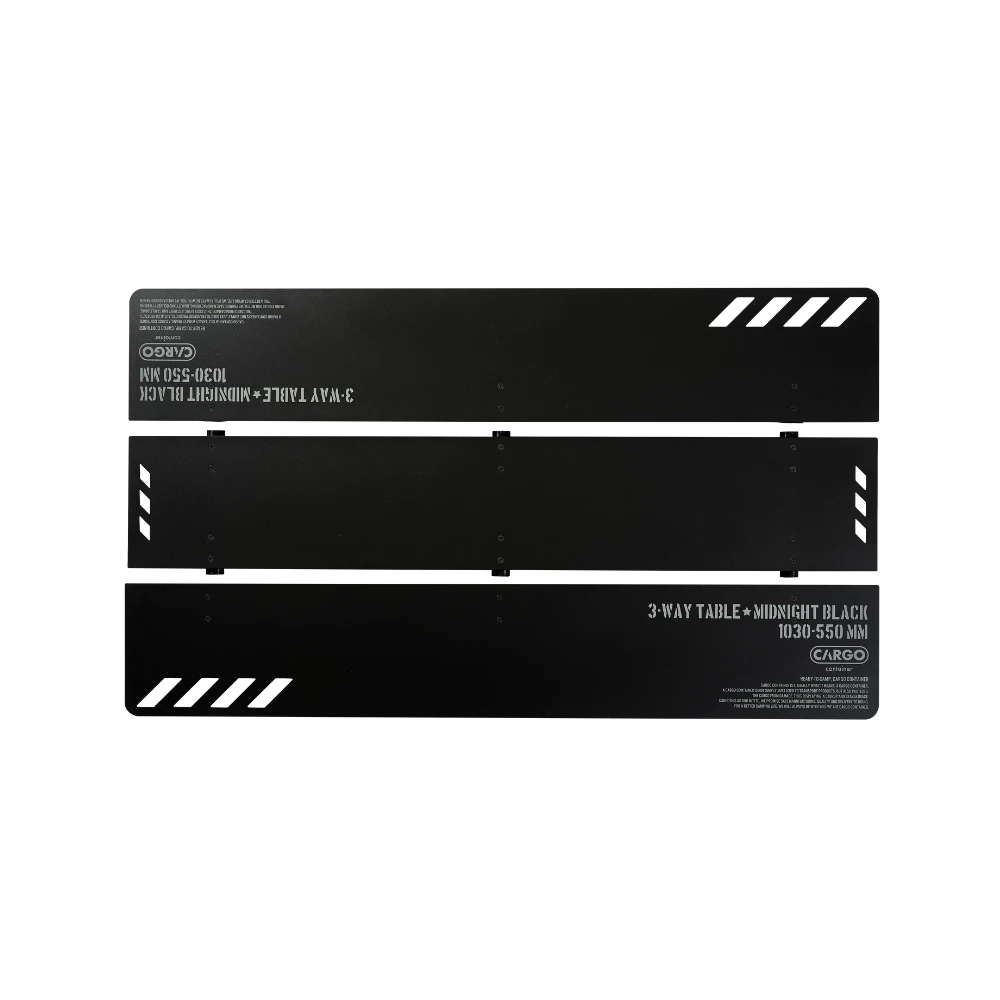 The patented 3-WAY TABLE is a folding table exclusively developed by CARGO CONTAINER. 3-WAY TABLE is the world’s first 3-part separating/combining table. This main table enables convenience and safety at the same time. Since the specifically developed connection coupling combines the countertop and the leg frames sturdily, the table is not separated out while moving or using it, which allows you to use it stably.