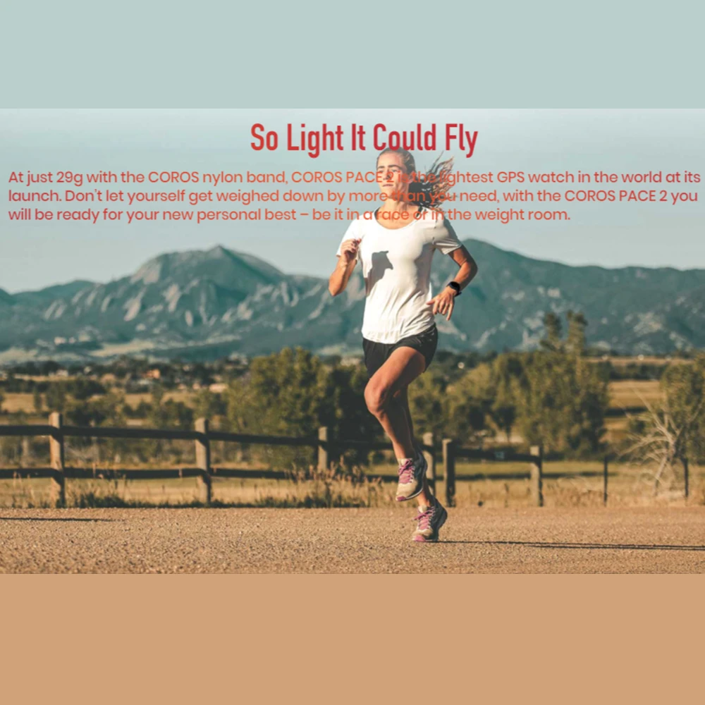 1. So Light It Could Fly: At just 29g with the COROS nylon band, COROS PACE 2 is the lightest GPS watch in the world at its launch. Don’t let yourself get weighed down by more than you need, with the COROS PACE 2 you will be ready for your new personal best – be it in a race or in the weight room.