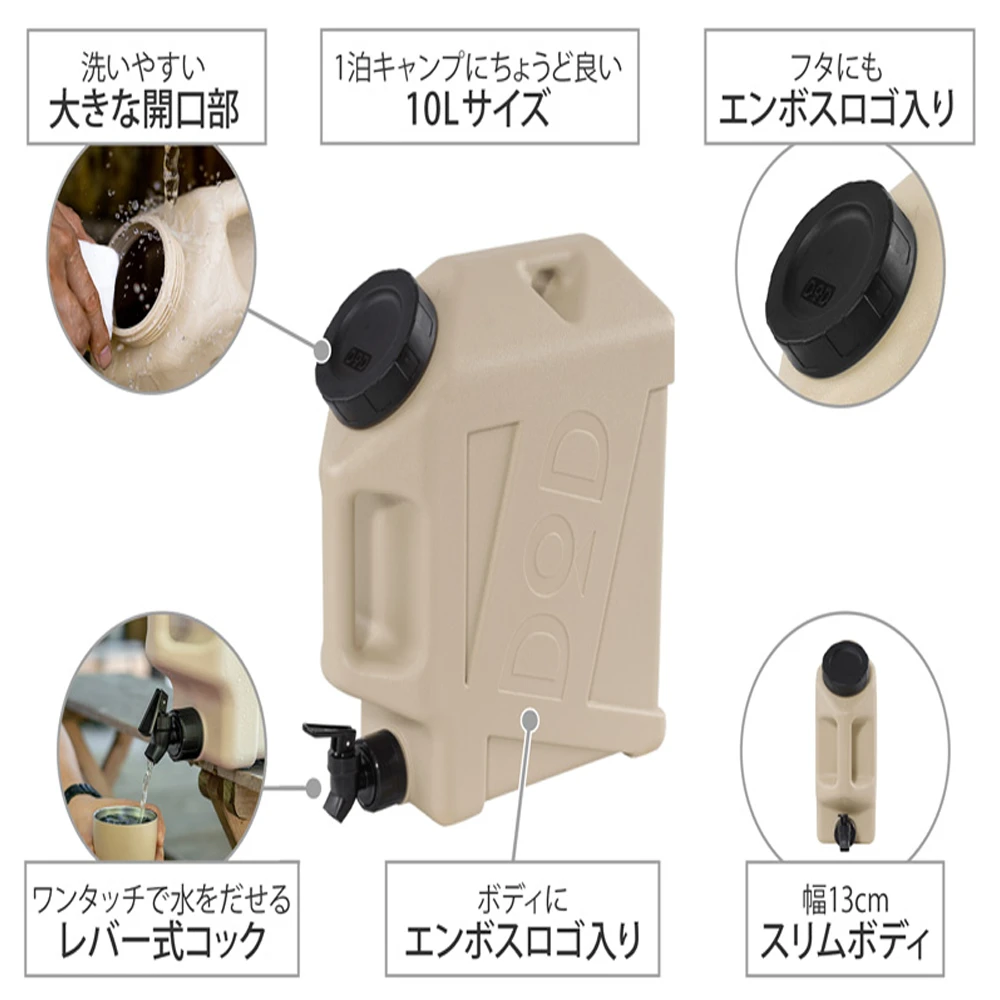 A water tank that is easy to put out, easy to wash, easy to dry, and has a small ingenuity. A 10L size water tank that can be used widely from BBQ to family camps.