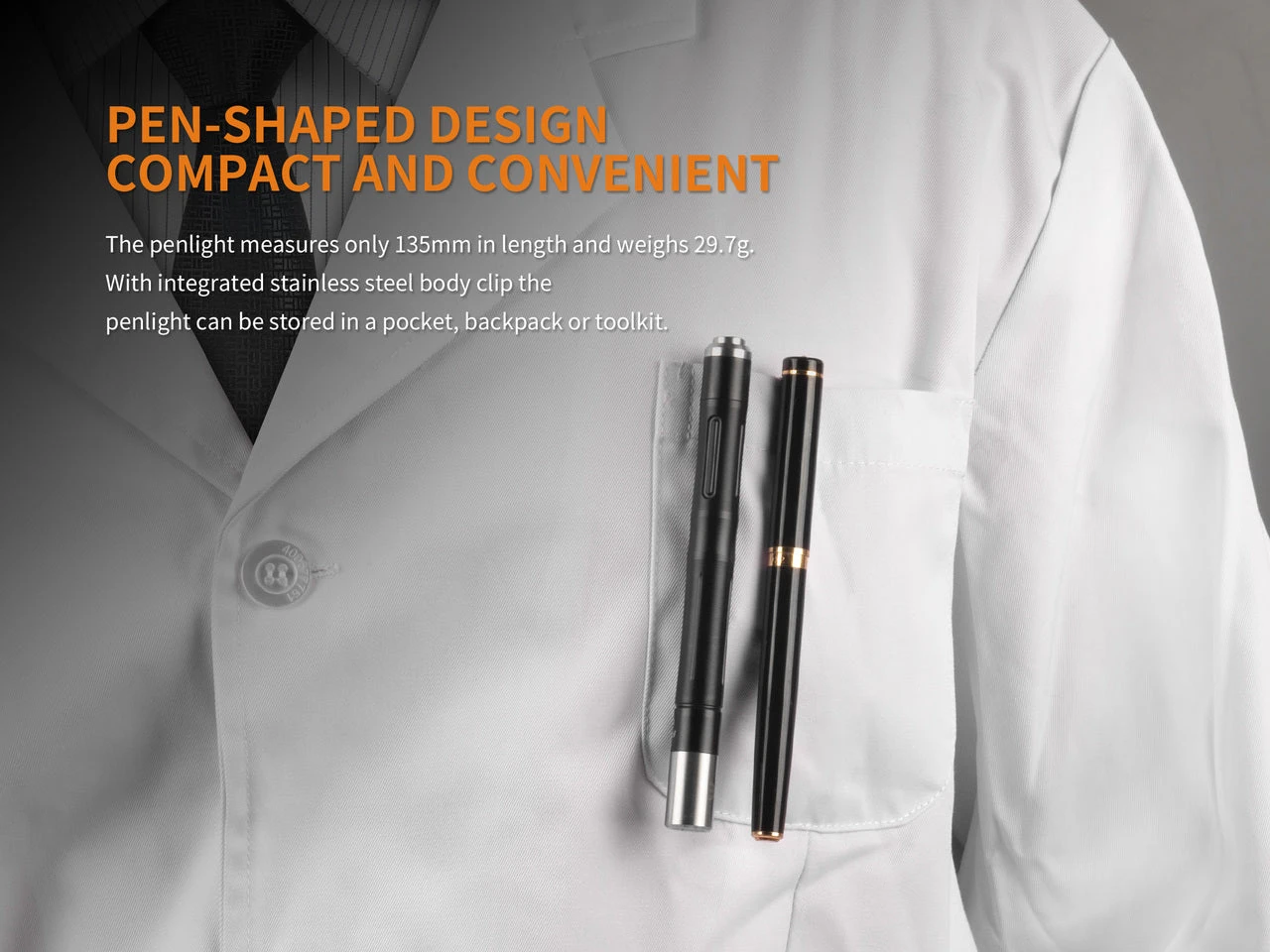 The Fenix LD05 V2.0 EDC Penlight is a easy to use dual lighting source penlight with warm white light and UV lighting also. The all new Fenix LD05 V2.0 uses a 90 CRI CREE XQ-E HI LED and a 365nm UV LED. Operating the Fenix LD05 is simple, the stainless steel tail switch controls all three warm white light outputs and the UV light output. A single click turns the Fenix LD05 on, and half clicks allows you to increase the outputs. The Fenix LD05 V2.0 is powered by two AAA batteries which deliver an amazing 100 Lumens of output. This light is perfect for doctors and dentists as well as helps with medical inspections in low-light areas. The powerful UV light also provide easy detection of counterfeit currency. Get your Fenix LD05 V2.0 today!