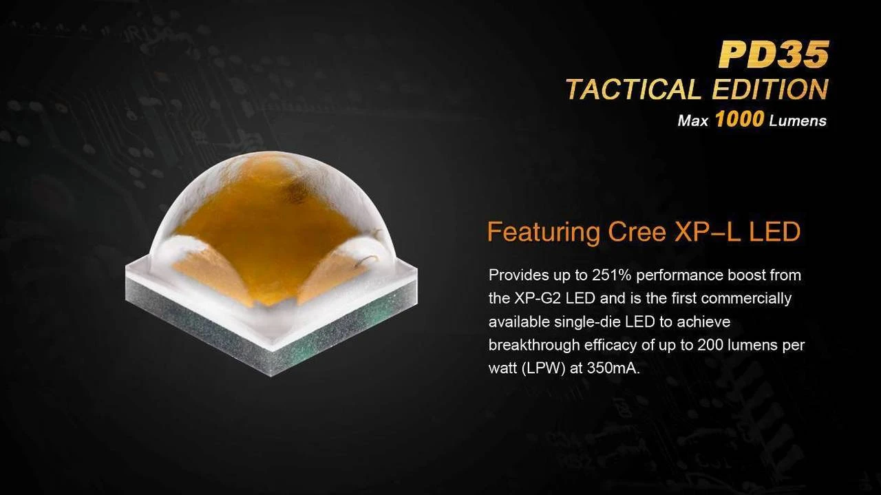 The Fenix PD35TAC (Tactical Edition) remains a pocket-size tactical flashlight but has a higher performance and focuses on tactical employment, compared to its predecessor the Fenix PD35. Fenix has taken the all-time bestselling PD35 LED flashlight and added some innovative user features to enhance its tactical capabilities. Measured at less than 5.51 inches, the Fenix PD35TAC flashlight features a 1000-lumen maximum output and has an impressive beam distance of up to 656 feet.