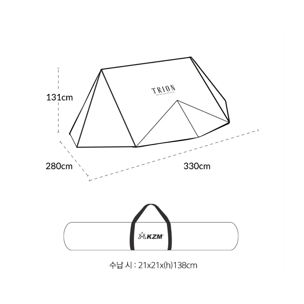 • Size : Upon installation-280x330x(h)131cm / Storage-21x21x(h)138cm / Inner tent-210x210x(h)130cm