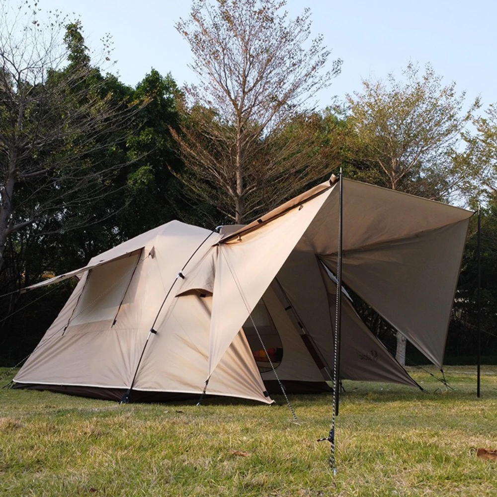 It is a automatic tent suitable for 3-4 person. There is extension for front hall to increase the space use of the tent. Fully enclosed waterproof and wind resistant to meet the needs of everyone when camping in different weather.