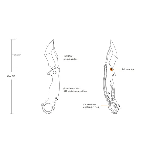 - Blade Material: 14C28N stainless steel (58~60 HRC)