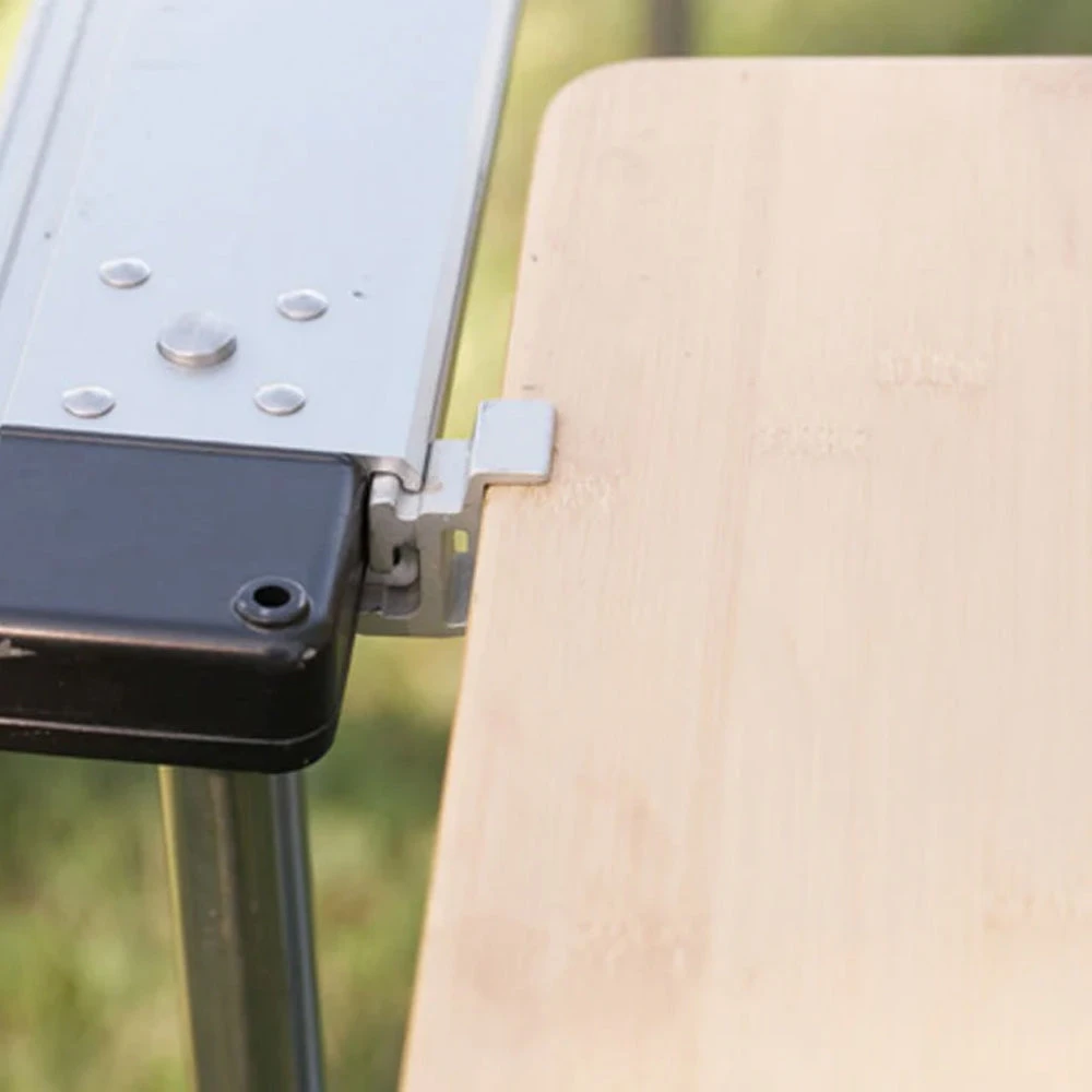 The IGT SLIDE TOPLONG HALF is made of sturdy and sleek bamboo in an updated finish. Use it to easily add 22 inches of extra space to your outdoor kitchen and dining space. The IGTÂ Slide Toplong Half does not require a hook, but slips into the ridges along the outside of the frame. Compatible with the IGT 4 Unit Sitting Set.