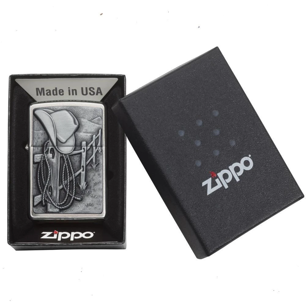 - Genuine Zippo windproof lighter with distinctive Zippo “click”